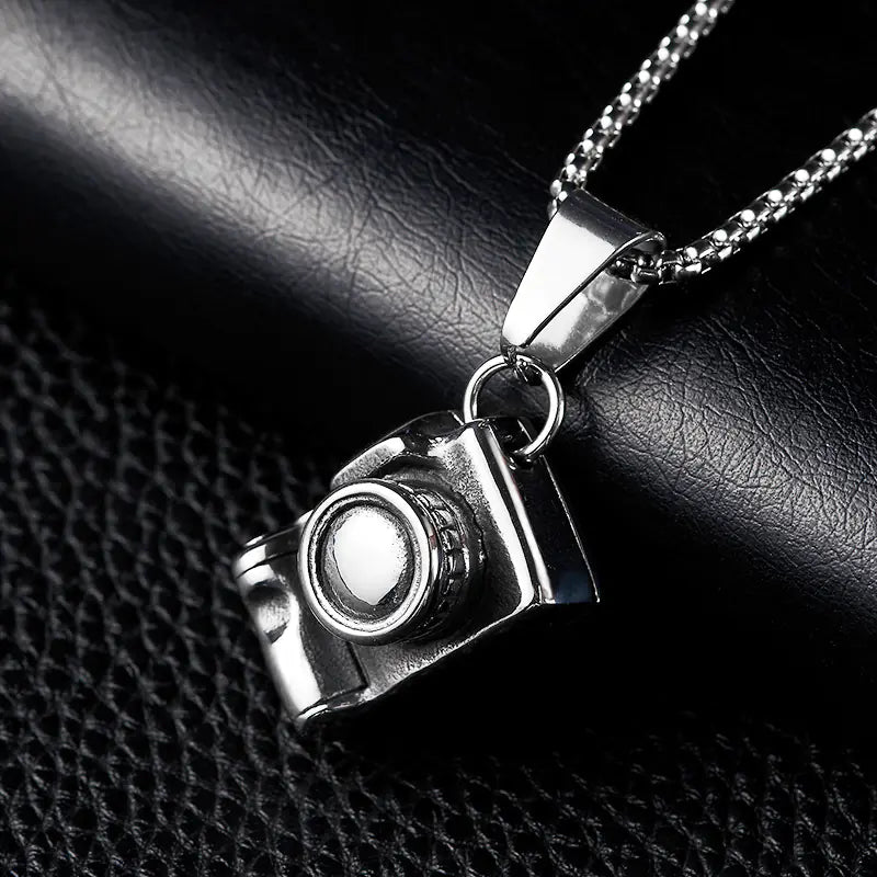 The pendant, designed in the shape of a classic camera, is a true conversation starter. Whether you choose to wear it alone or pair it with other pieces, it enhances any outfit with its distinctive flair.