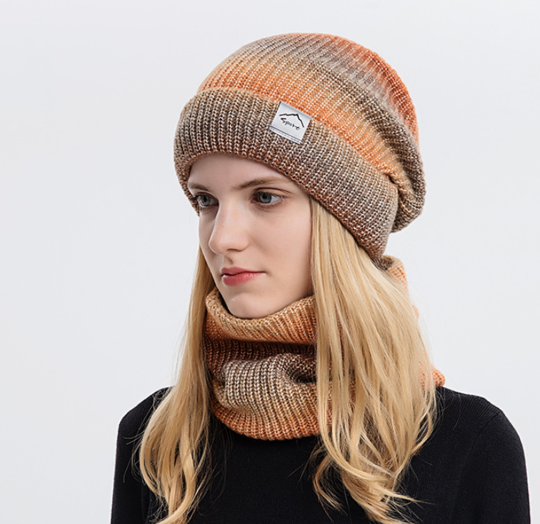 This fashionable hat comes in a variety of stunning gradient colors including blue, purple, orange, yellow, and grey, allowing you to express your style while staying warm. Each color gradually transitions, adding a unique touch to your winter wardrobe.